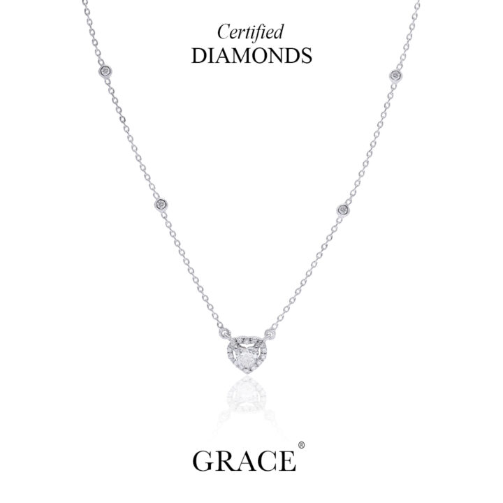 5.700 grams of 18 karat gold , 0.78 carat GIA CERTIFIED HEART SHAPE NATURAL DIAMOND of H Color Vs 2 Clarity , 0.36 carat small diamonds in chain .