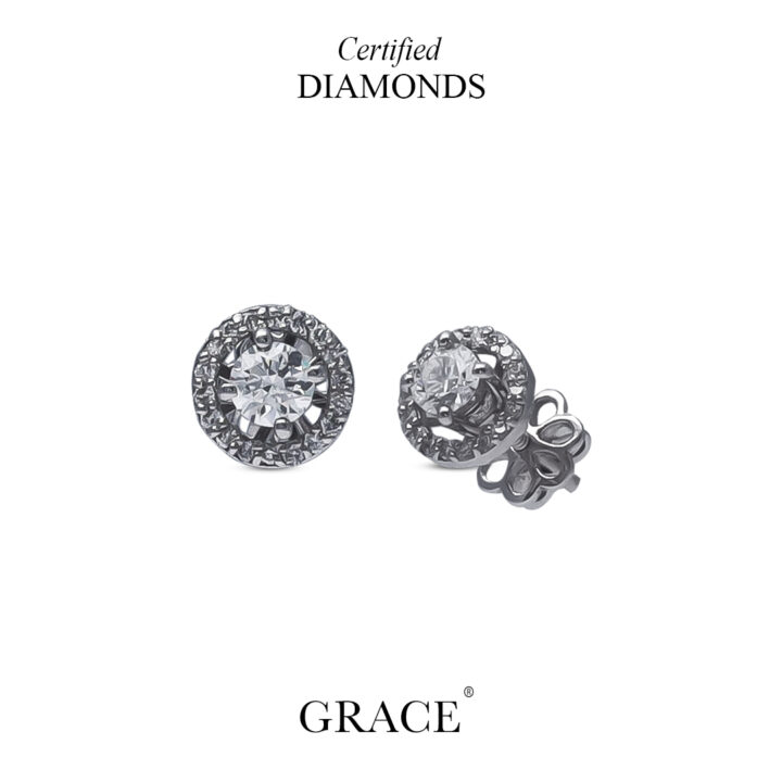 All diamonds are of F color , VVS clarity , Excellent cutt & polish with no floroscese . As a matter of POLICY , we use ONLY NATURAL DIAMONDS in all of our products . Our team has a DIAMOND GRADER DEGREE from INTERNATIONAL GEMOLOGICAL INSTITUTE.